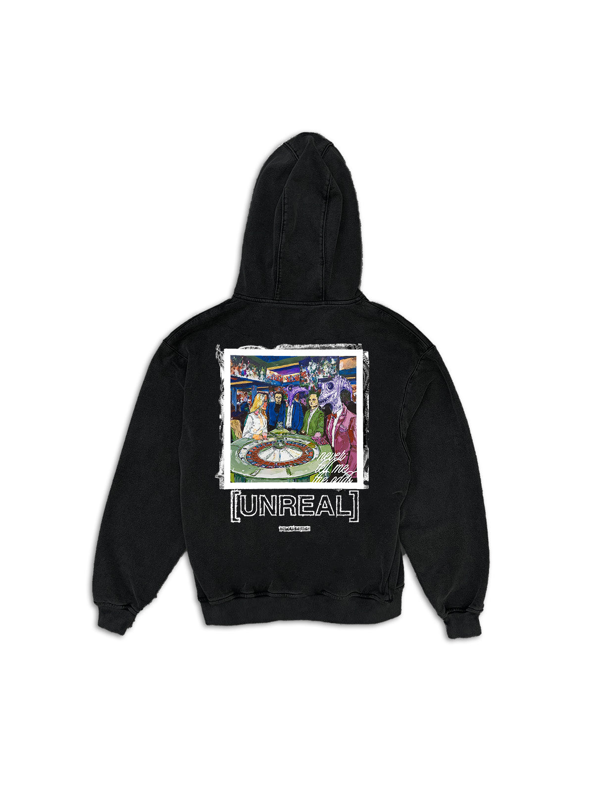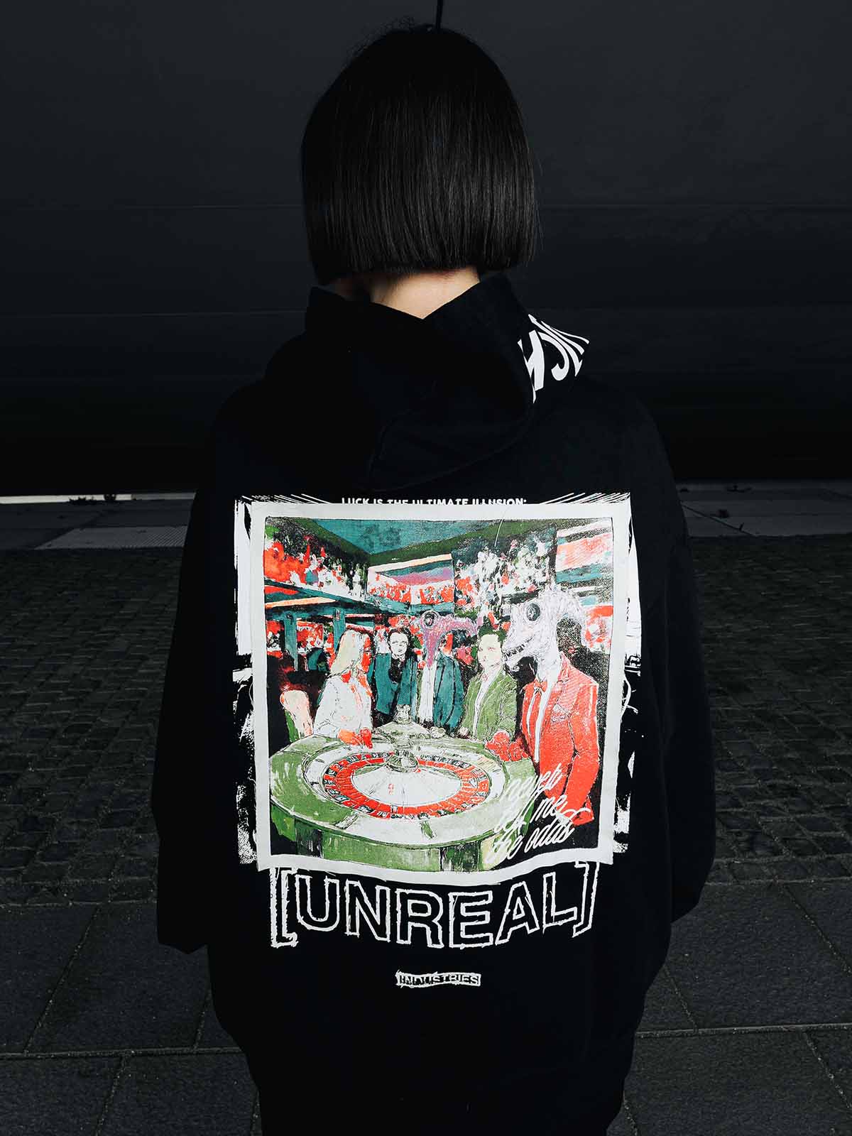 UNREAL Foltos Kaszinó Kapucnis Pulóver Ékfekete