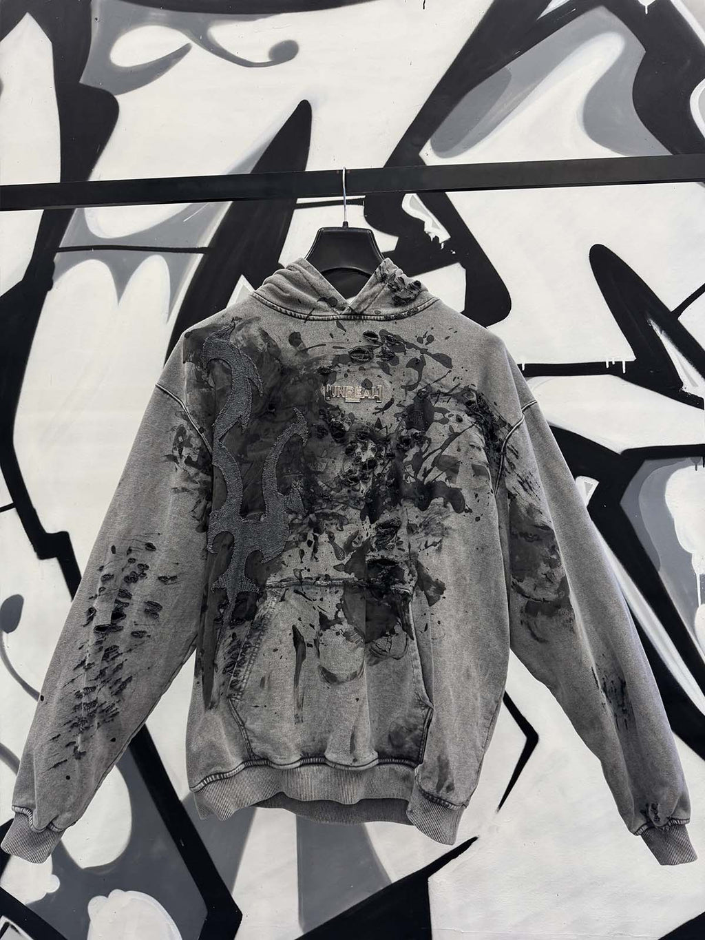 Ez a különleges kapucnis pulóver nem csupán egy átlagos ruhadarab. Minden egyes darab gondosan válogatott, kiváló minőségű, nehéz pamut anyagból készül, majd kézzel tökéletesítjük. Művészeink aprólékos munkával, egyedi festéssel és személyre szabott részletekkel tették igazán különlegessé ezt a darabot.