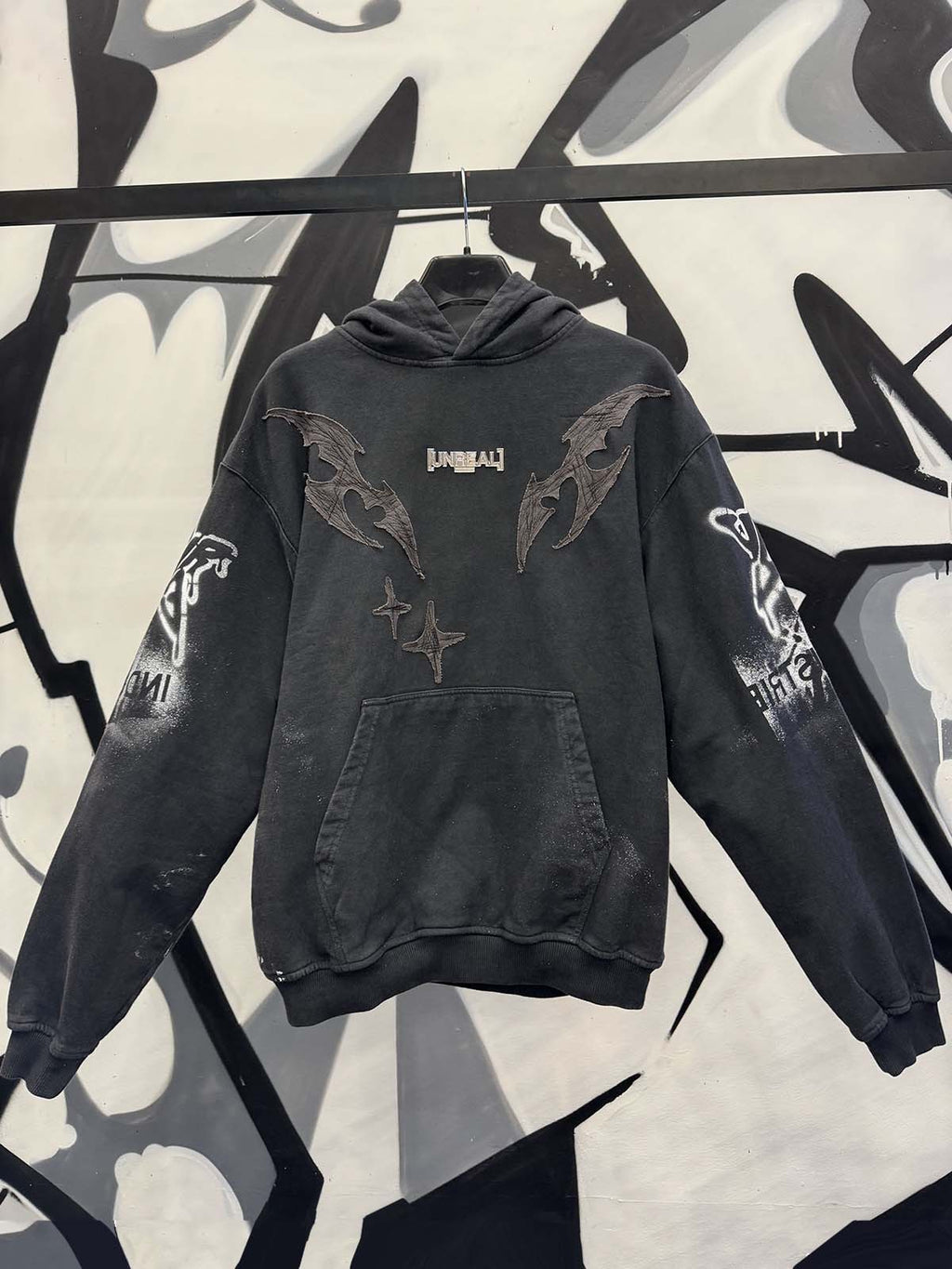 UNREAL Custom made Hoodie - Unique, 1/1 product with extra sewings and durable paint finish on it.
