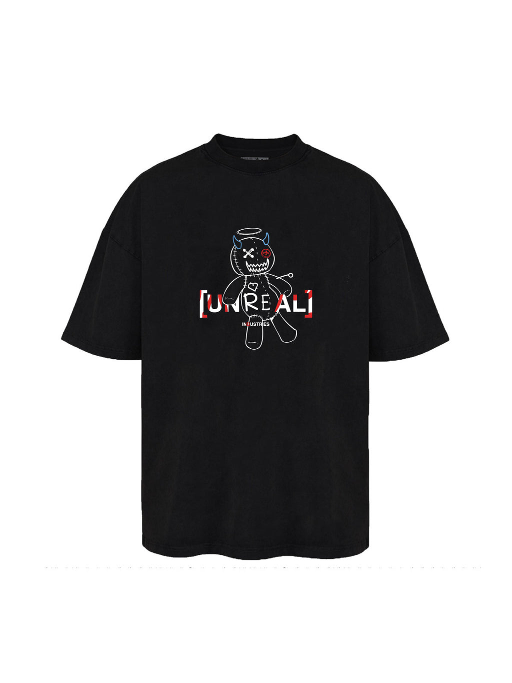 The collab drop draws attention to bullying and the general anxiety affecting teens. The Spinoza Voodoo doll graphics featured by two new UNREAL T-shirts symbolize the deep wounds caused by mere words. The clothes turn "bad words" insults into positive messages.