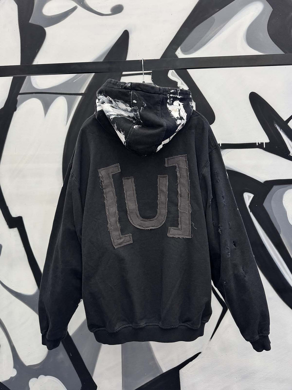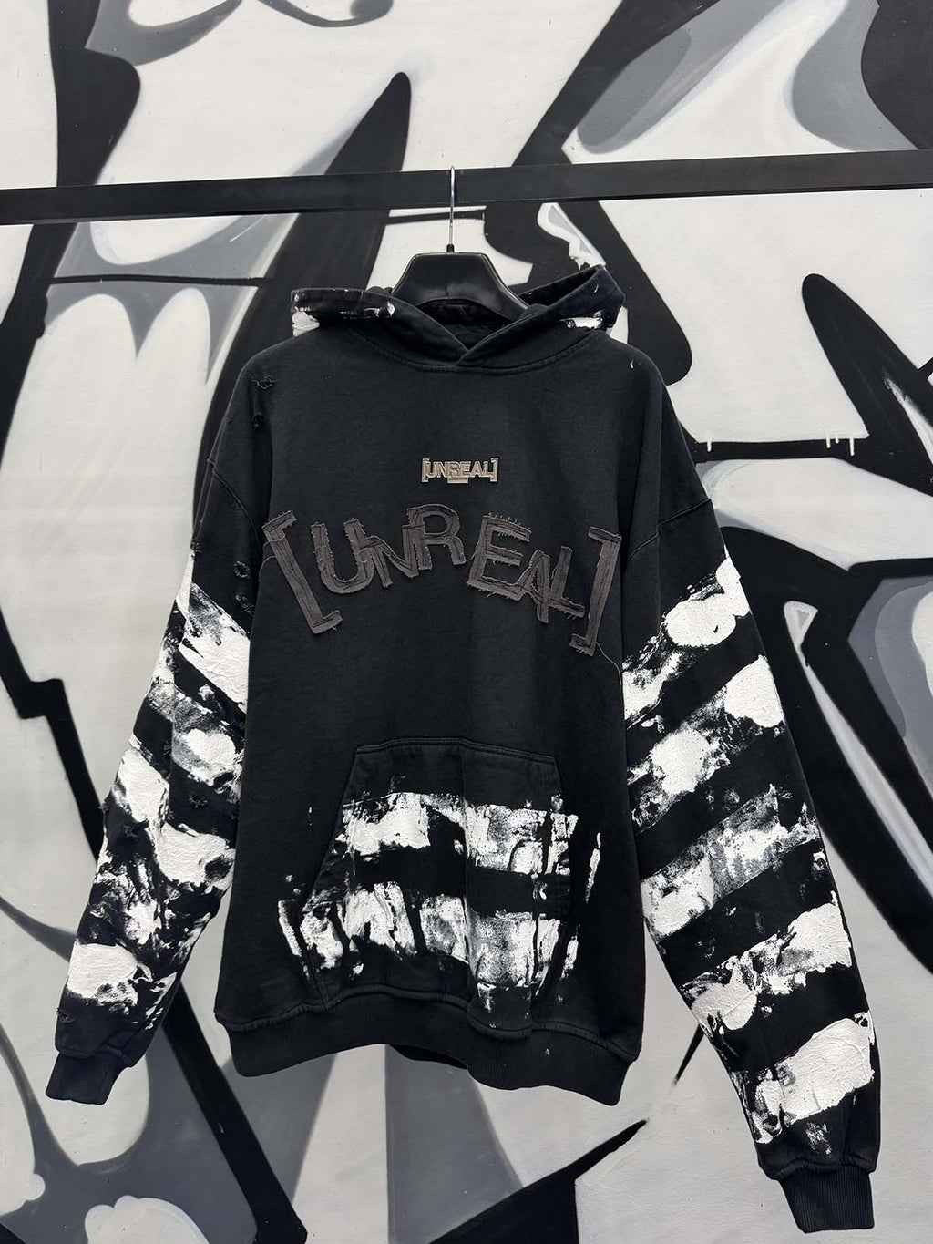 UNREAL Custom made Hoodie - Unique, destroyed, 1/1 product with extra sewings and durable painted finish on it.
