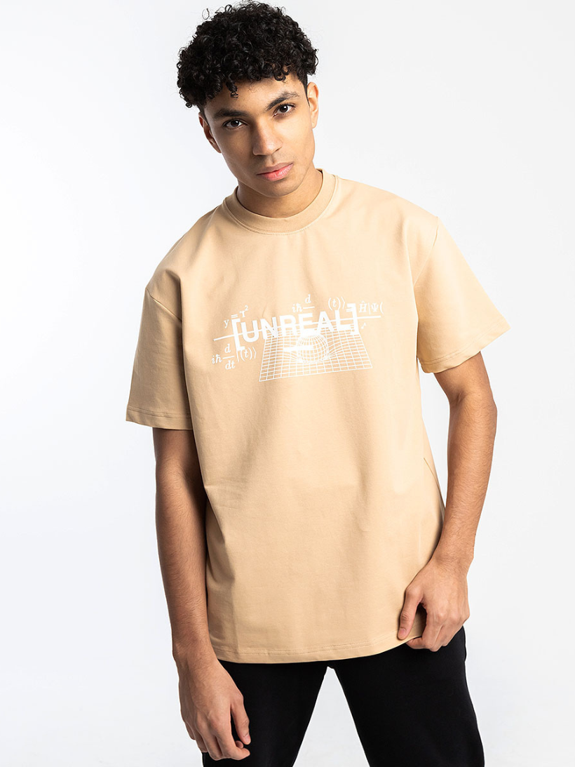 Tricou clasic, unisex, supradimensionat, Unreal Industry, de culoare nisip, din bumbac de calitate, greu. Verificați materialul mai potrivit și premium al tricourilor din sezonul 8!