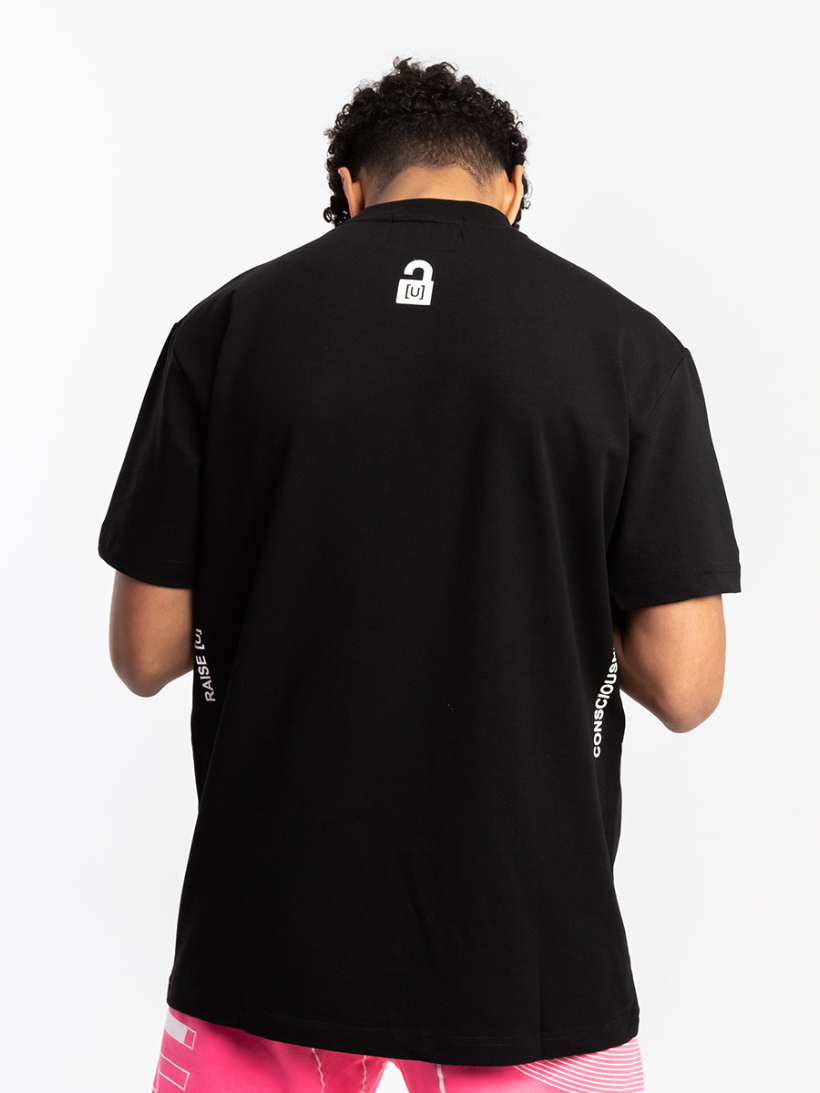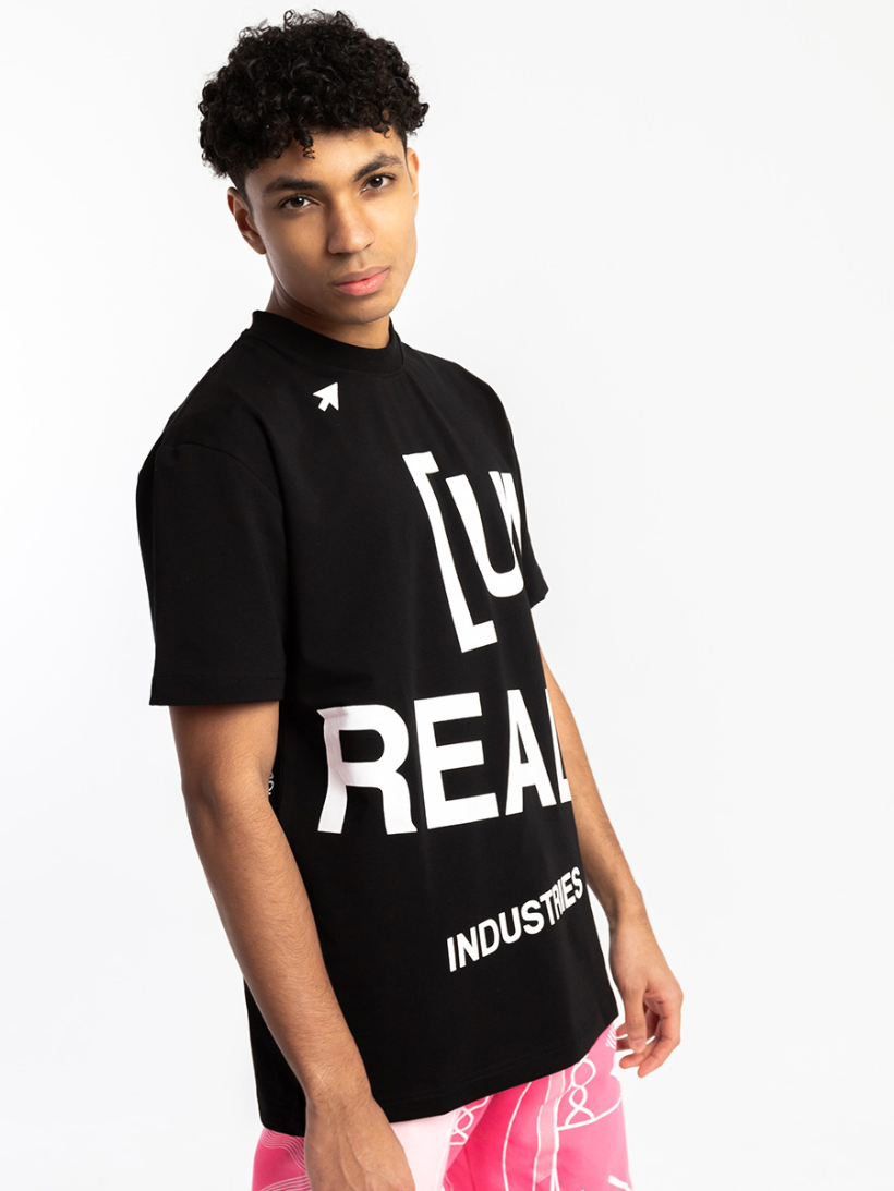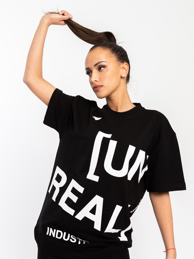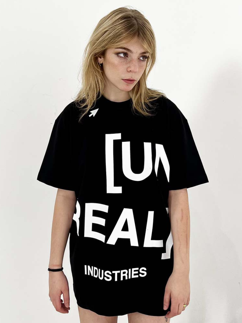 Tricou supradimensionat de la Unreal Industries, care este realizat din bumbac greu pentru o potrivire perfectă. Imprimeurile din față și din spate spun povestea călătorilor în timp într-o gaură de vierme care și-au pierdut drumul și sunt sortiți să călătorească în timp pentru eternitate.