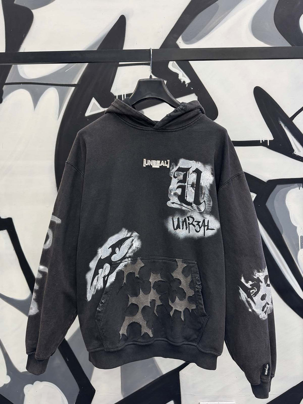Alegeți acest hanorac exclusivist din bumbac greu pictat manual și ieșiți în evidență din mulțime prin stil și unicitate!