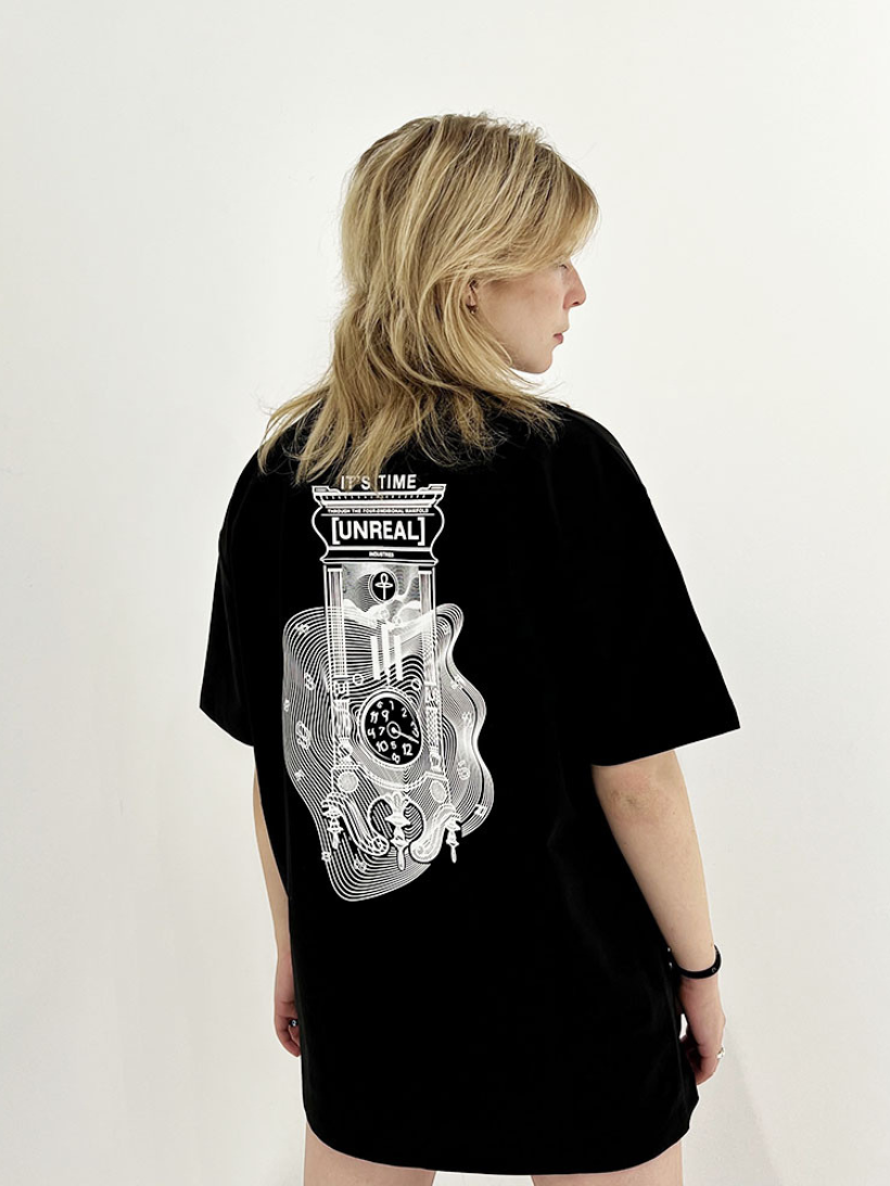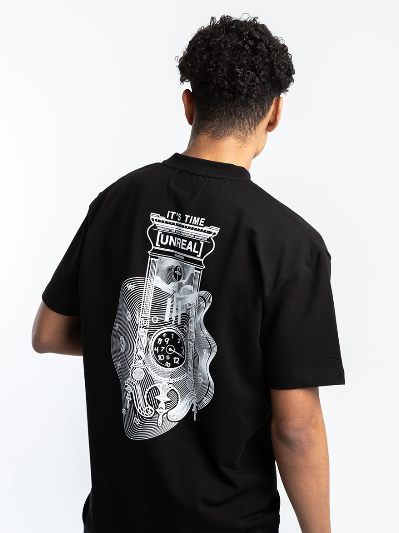 Tricou supradimensionat, unisex, negru, realizat din bumbac greu de către Unreal Industries. Verificați potrivirea mai bună a bumbacului premium din produsele noastre din sezonul 8.