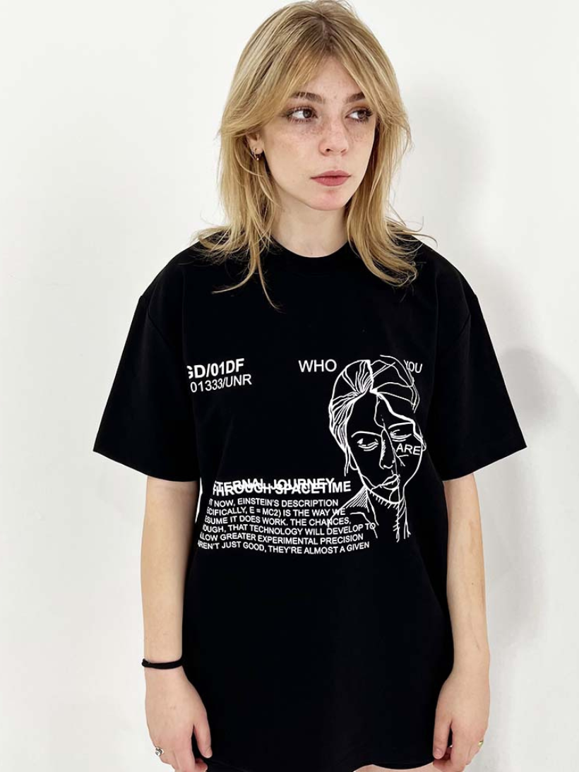 Imprimeurile din față și din spate spun povestea călătorilor în timp într-o gaură de vierme care și-au pierdut drumul și sunt sortiți să călătorească în timp pentru eternitate.